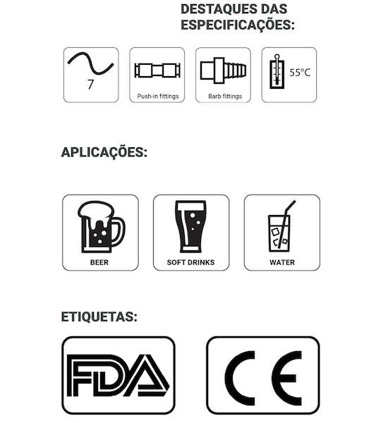 Tubo de duas camadas, oferece boa flexibilidade e higiene. Adequado para a maioria dos sistemas de distribuição de bebidas frias.