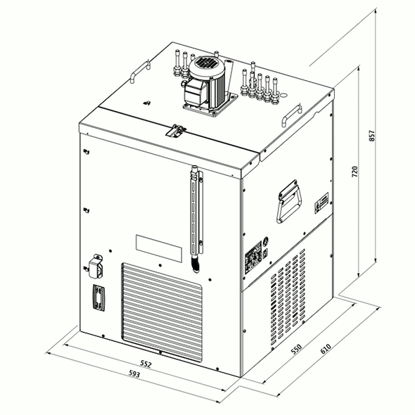 Unidade sob o balcão com banho-maria para resfriar e servir cerveja em alto fluxo.