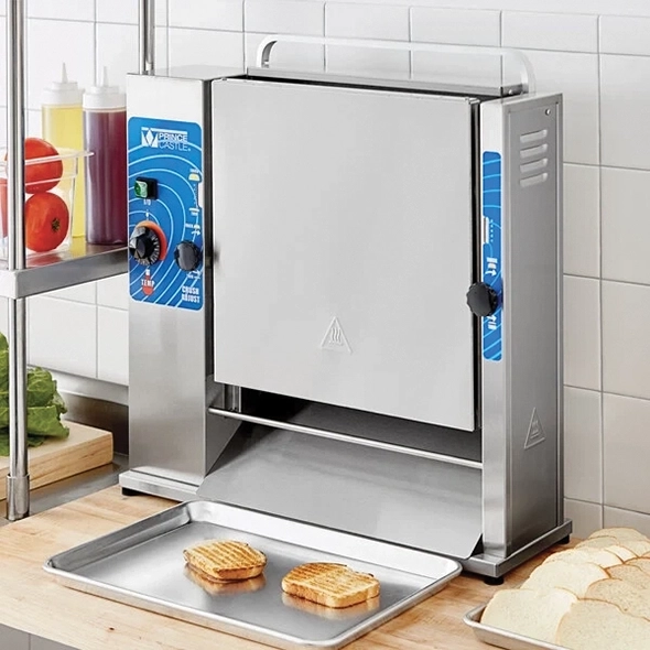 Tostadeira vertical compacta e eficiente, ideal para tostar pães com precisão em alta demanda comercial.