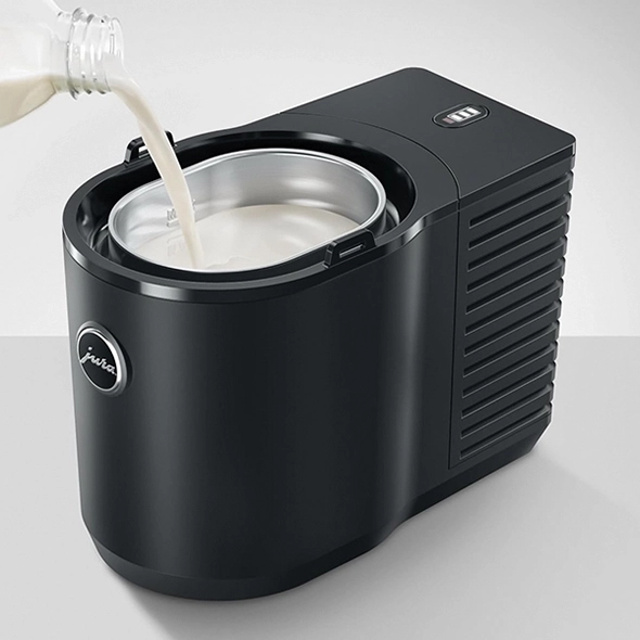 O Cool Control JURA de 1l é o equipamento que você precisa para manter o leite na temperatura adequada para menores volumes de produção.