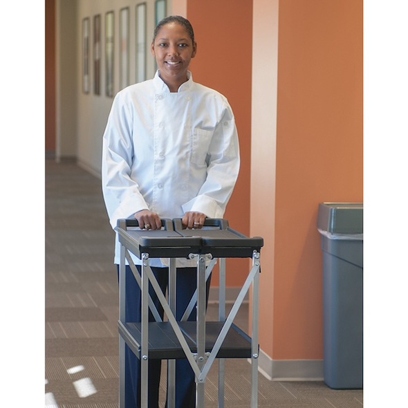 O Carrinho de Serviço Dobrável da Carlisle redefine a conveniência. Perfeito para catering, serviço de quarto ou qualquer situação que exija um transporte ágil e armazenamento compacto, este carrinho se dobra para apenas 23 cm de largura. Suas três prateleiras de polietileno texturizado oferecem amplo espaço e evitam que os itens deslizem, enquanto as colunas de alumínio garantem uma estrutura leve, mas surpreendentemente robusta, capaz de suportar até 136 kg. Equipado com rodízios giratórios que não marcam o piso, ele desliza suavemente por corredores e cozinhas. A montagem é instantânea: basta pressionar as travas para dobrar ou desdobrar.