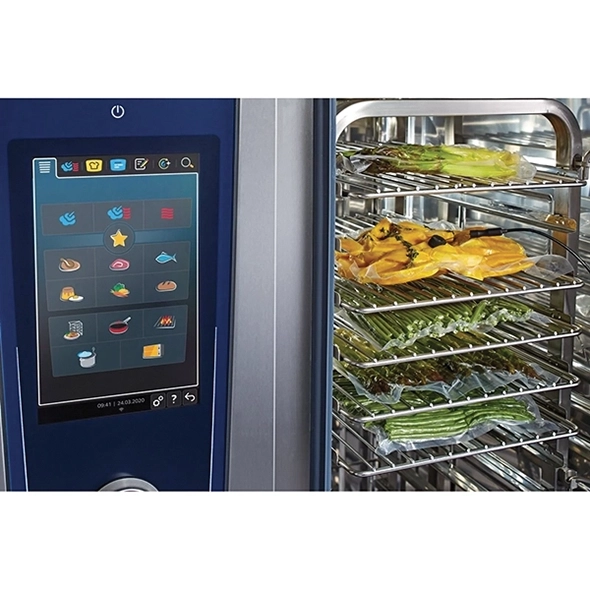 O iCombi Pro ajuda a organizar os complexos processos de produção de forma inteligente e flexível. Não importa se o chef deseja preparar produtos diferentes ao mesmo tempo, quer se trate de produzir com otimização de tempo, organizar uma sequência de alimentos eficiente ou manter um tempo de produção predefinido. No final, evitam-se os gargalos e reduz-se o nível de estresse.