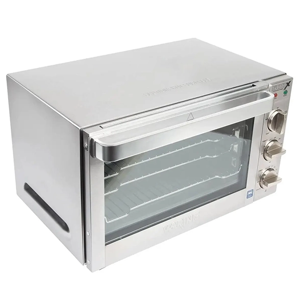 O Forno AR WCO500EBZL, da Waring, é um forno elétrico de convecção de alto desempenho, projetado para assar, grelhar e tostar com rapidez e consistência. Com 230V de funcionamento e capacidade de múltiplas funções, ele vem equipado com ventilação de convecção que distribui o calor de forma uniforme, garantindo um preparo eficiente. Ideal para lanchonetes, cafeterias ou cozinhas comerciais, o modelo conta com controles precisos de tempo e temperatura, além de um interior espaçoso que acomoda várias bandejas e recipientes. Seu design robusto inclui um corpo em aço inoxidável resistente, facilitando a limpeza e garantindo durabilidade.