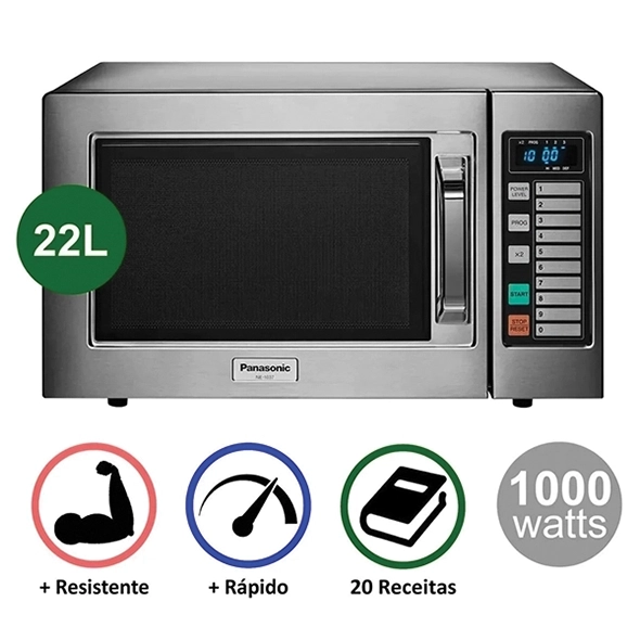 Forno micro-ondas de uso comercial com 22 litros de capacidade, potência de 1000W e operação confiável para cozinhas de alta demanda.