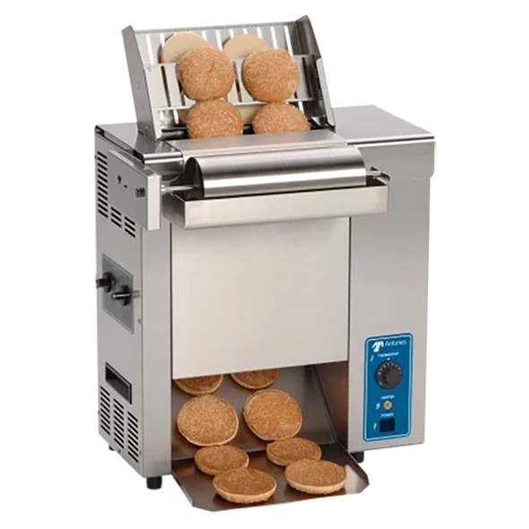 A Tostadeira Vertical VCT1000, da AJ Antunes, é projetada para operações de alta demanda, oferecendo tostas uniformes e rápidas. Com capacidade para tostar pães em apenas 10 segundos, é perfeita para estabelecimentos como redes de fast food e cafeterias. Este modelo opera em 220V e utiliza correias de silicone, que garantem consistência e precisão no processo de tostagem, enquanto evitam danos ao produto. Seu design compacto e construção robusta tornam a VCT1000 uma solução confiável para aumentar a eficiência em cozinhas comerciais.